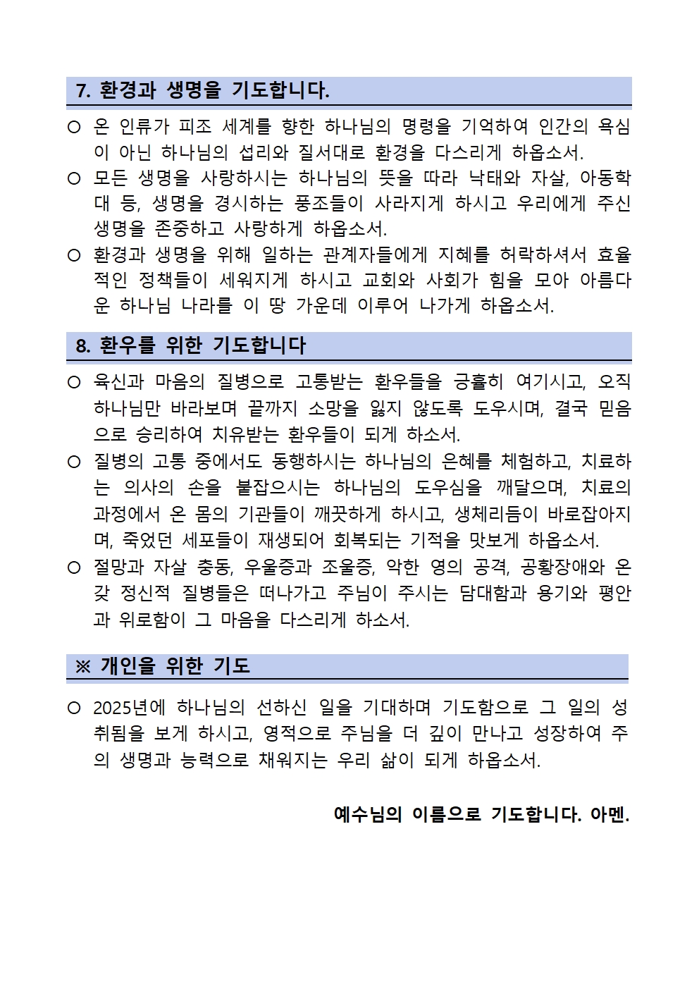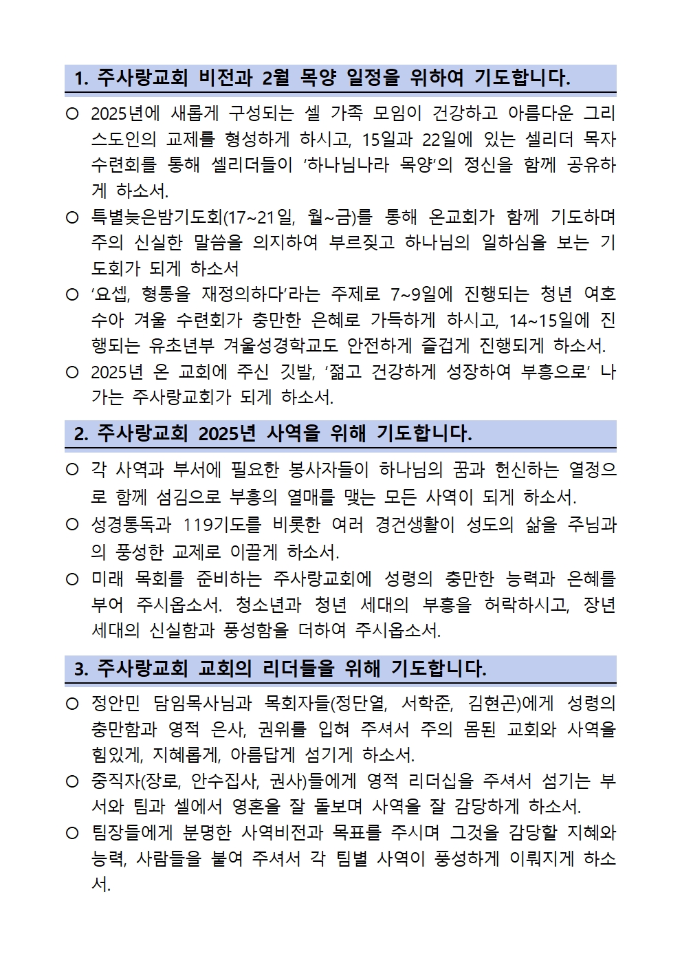 2025년 1월 주사랑공동체 119 집중기도