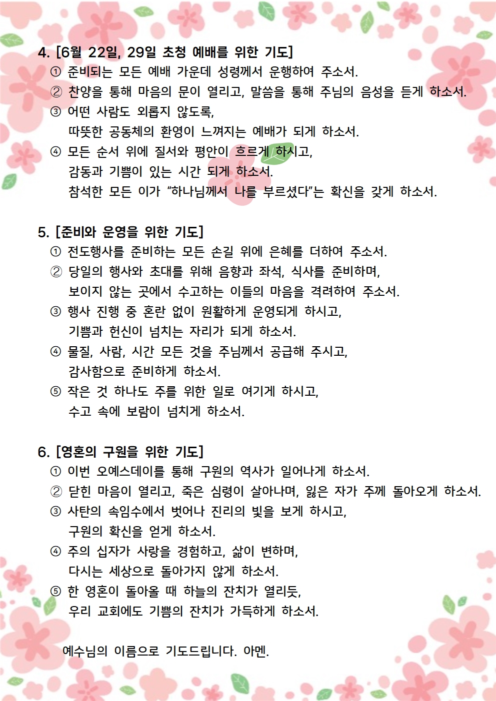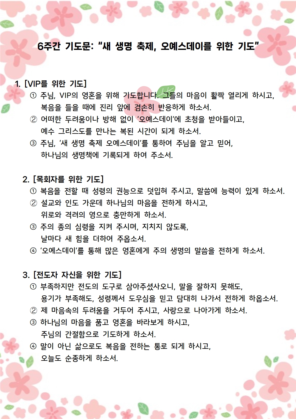 2025년 6월, 7월 오예스데이를 위한 집중 기도문